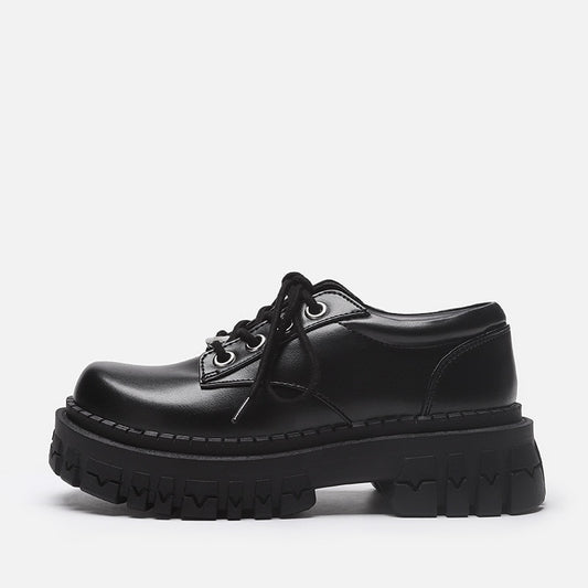 Knee High Lace Up Buckle Detail Leather Platform Boots
