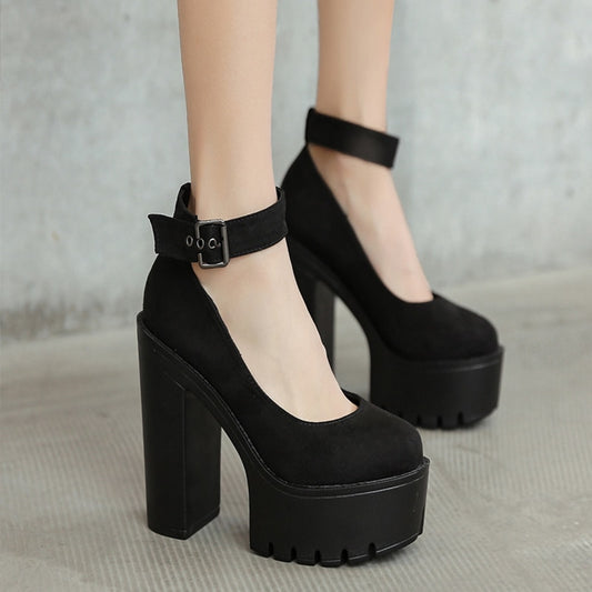 Chunky Platform Ankle Strap Block Heel Pumps