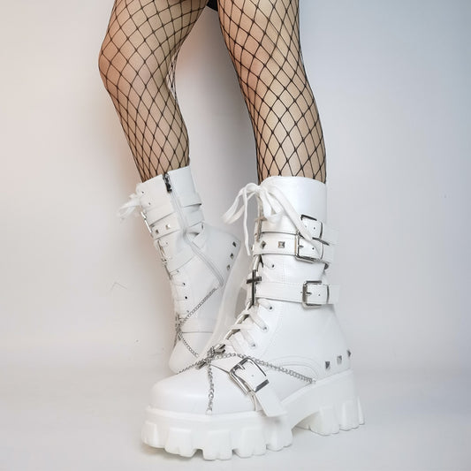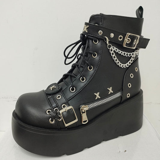 Spider Web Chain Metal Detail Chunky Platform Boots