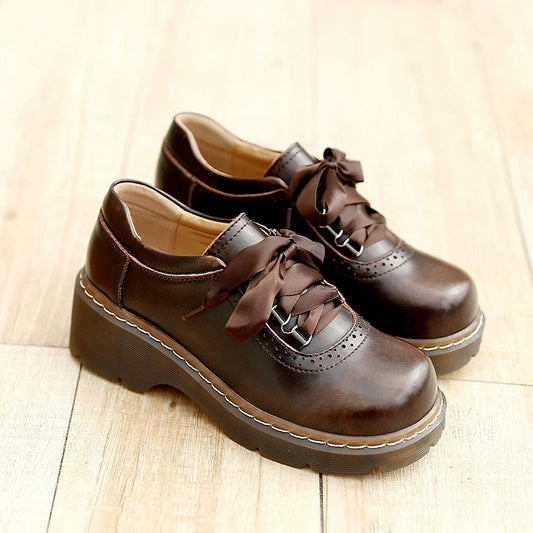 Chunky Vintage Style Ribbon Lace Up Platform Oxfords